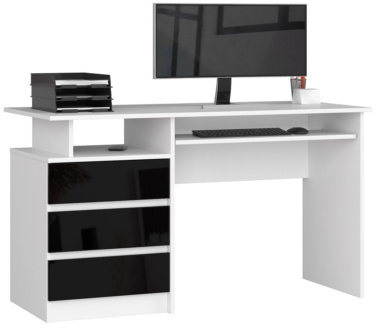 Perfekcyjne biurko do pracy i zabawy powinno być wygodne, ładne i funkcjonalne. Takie jest również biurko CLP z oferty sklepu internetowego z meblami Akord. Nowoczesny wygląd nadaje mu nie tylko efektowna konstrukcja, ale także przyciągające uwagę połączenie czerni i bieli. Dzięki trzem przestronnym szufladom, przegródce na drobiazgi i wysuwanej półce na klawiaturę, ten model jest niezwykle praktyczny. Jego zaletą jest również to, że jest to mebel wolnostojący - nie trzeba go umieszczać przy ścianie, ponieważ jego tylna część jest estetycznie wykończona.