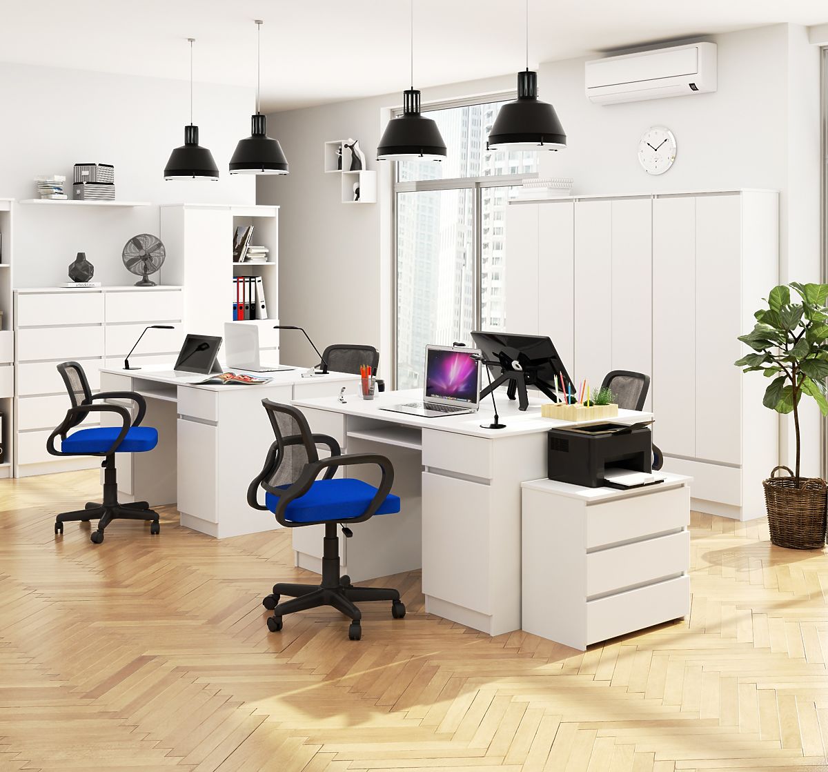 - Biurko z laminowanej płyty odpornej na ścieranie