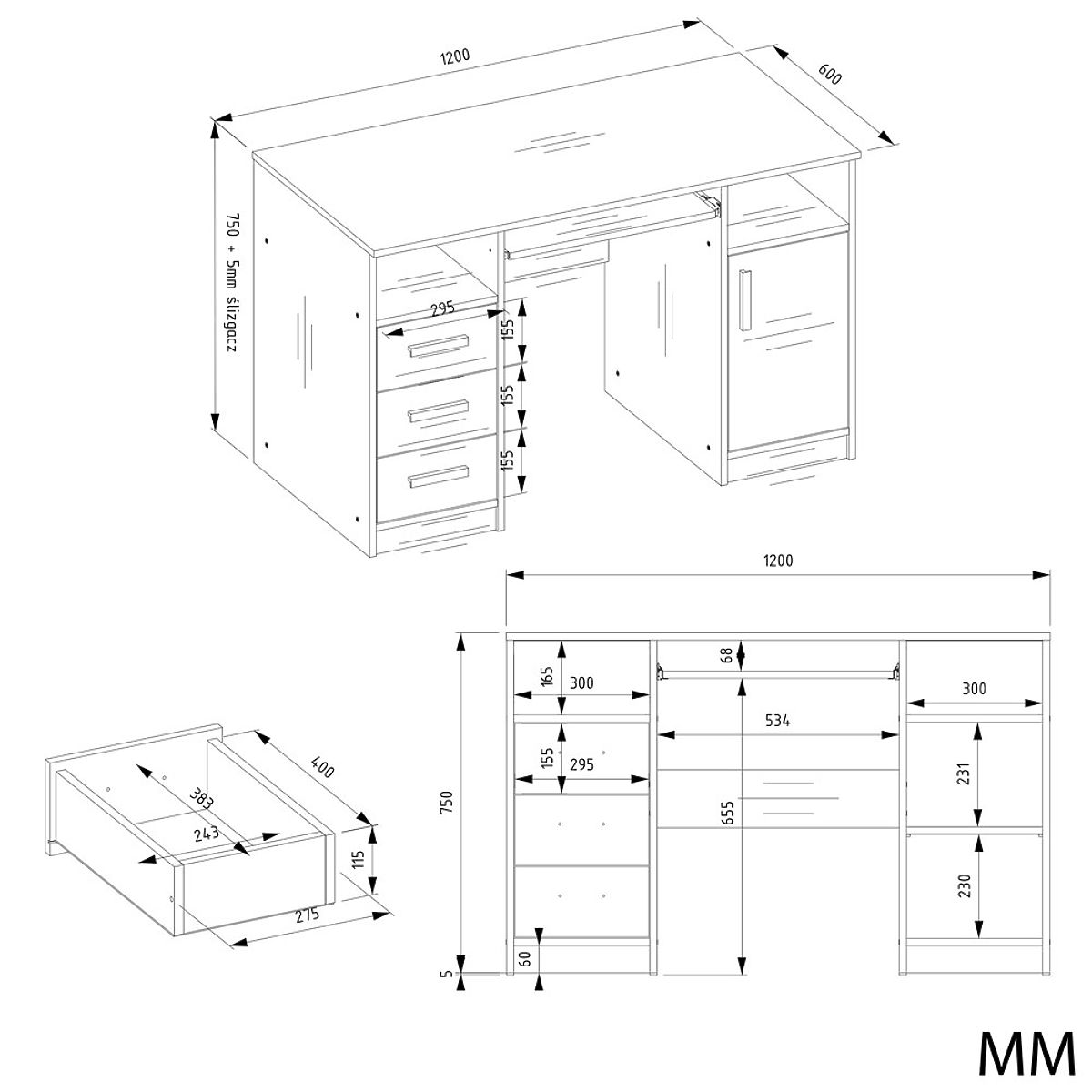 BIURKO Z 3 SZUFLADAMI, 1 DRZWIAMI I PÓŁKAMI