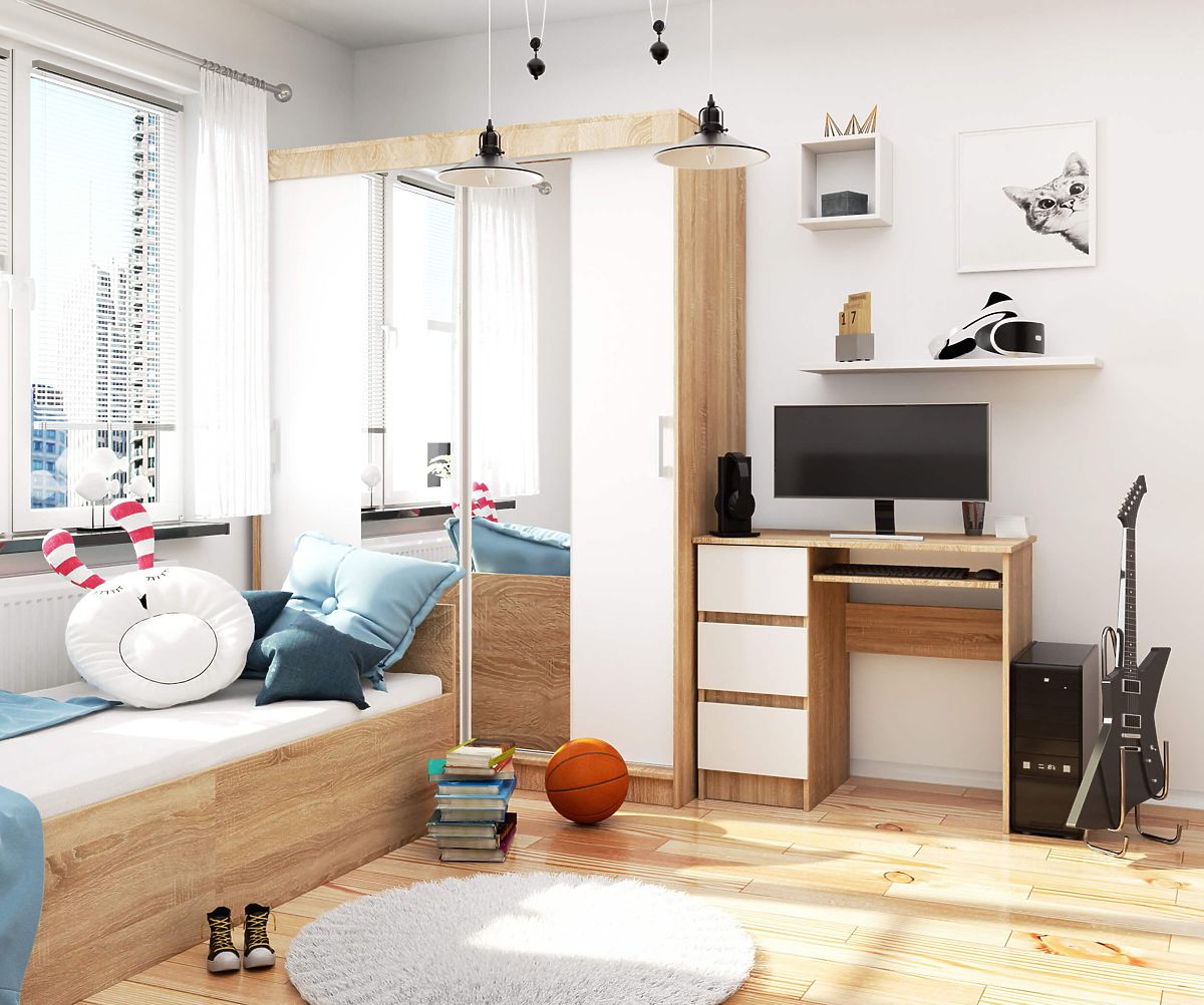 Małe i eleganckie biurko komputerowe A-6 w kolorze dębu sonoma to doskonały wybór dla młodzieży i miłośników nowoczesnych wnętrz. Wygląda elegancko i odpowiada współczesnym trendom. Mebel, który potrafi dostosować się praktycznie do każdego, nawet najmniejszego pomieszczenia, jest jednocześnie efektywny w pracy. Blat biurka o wymiarach 90 cm x 50 cm zapewnia wystarczająco dużo miejsca na przybory szkolne, podręczniki oraz laptop lub komputer.