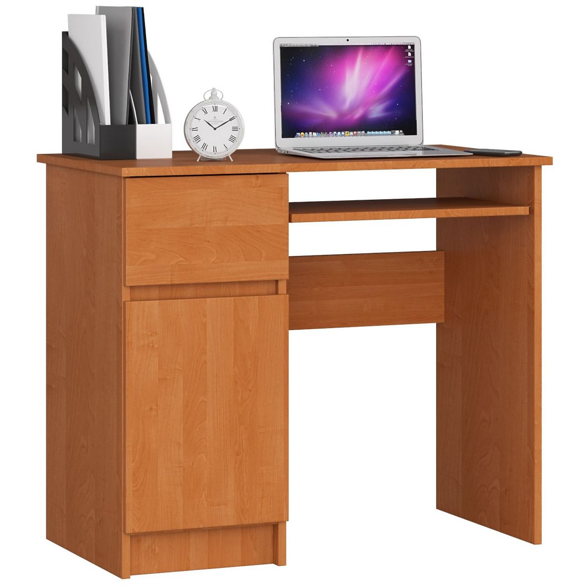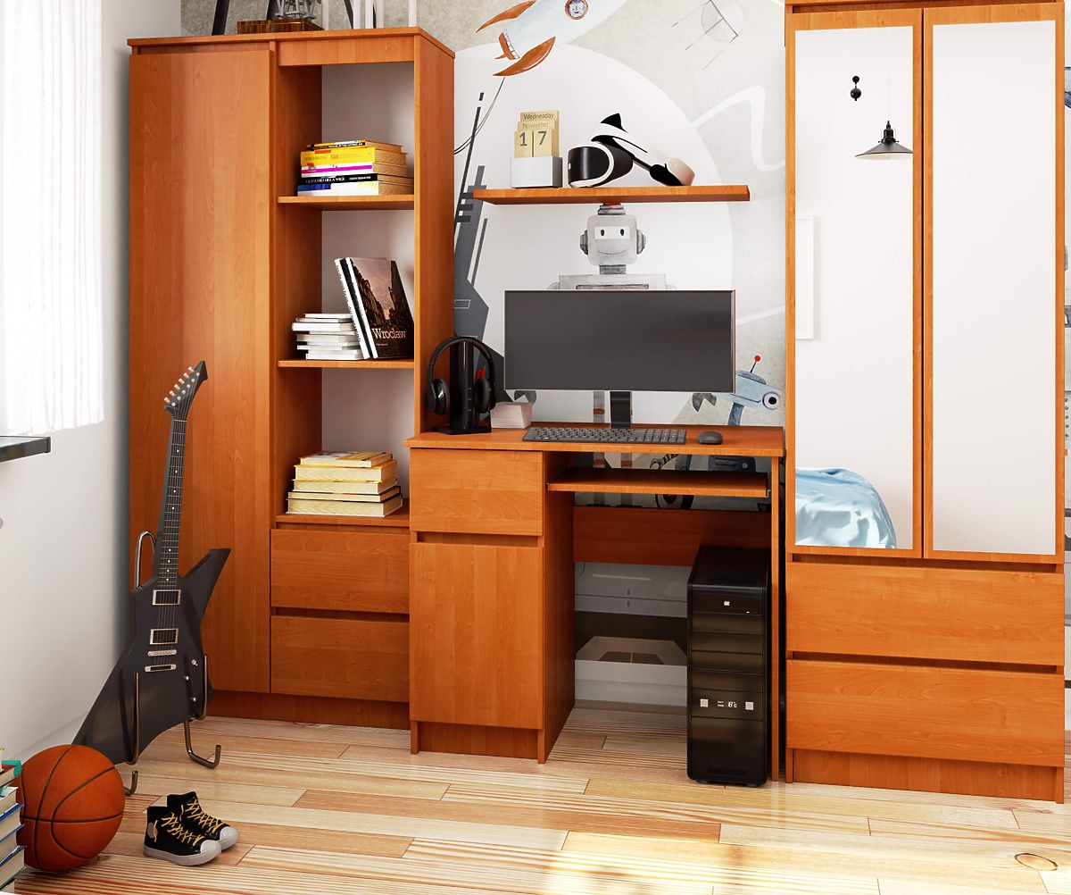 Biurko Piksel to małe biurko z dużą ilością miejsca na najpotrzebniejsze rzeczy do szkoły. Dzięki drzwiczkom pomieści wiele zeszytów i książek. Biurko ma długość 90 cm i doskonale nadaje się do małych i średnich pomieszczeń.
