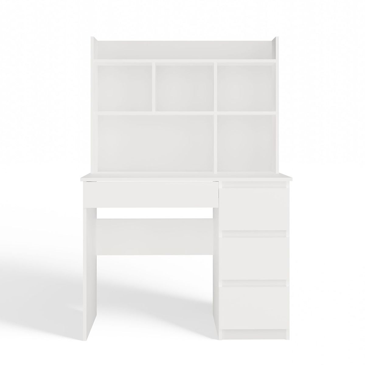 Biurko MIJAS Prawe z Nadstawką Biel Mat 4 Szuflady 4 Półki Do Biura Pokoju