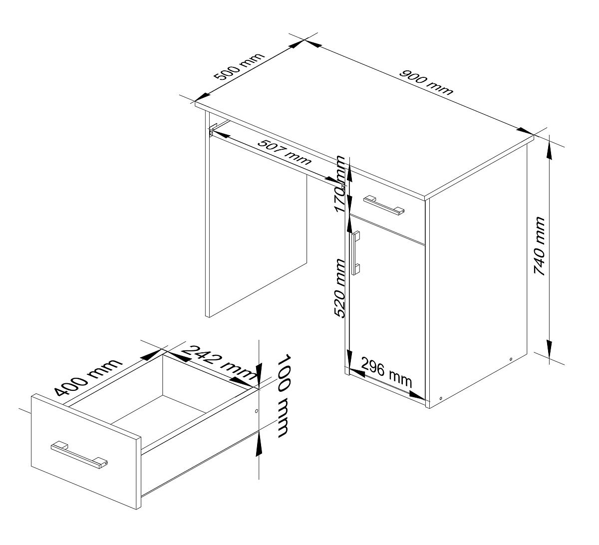 - Szuflady i półka na klawiaturę poruszają się na metalowych prowadnicach rolkowych