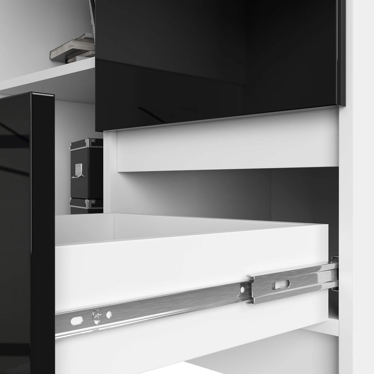 - Szuflady poruszają się na metalowych prowadnicach rolkowych