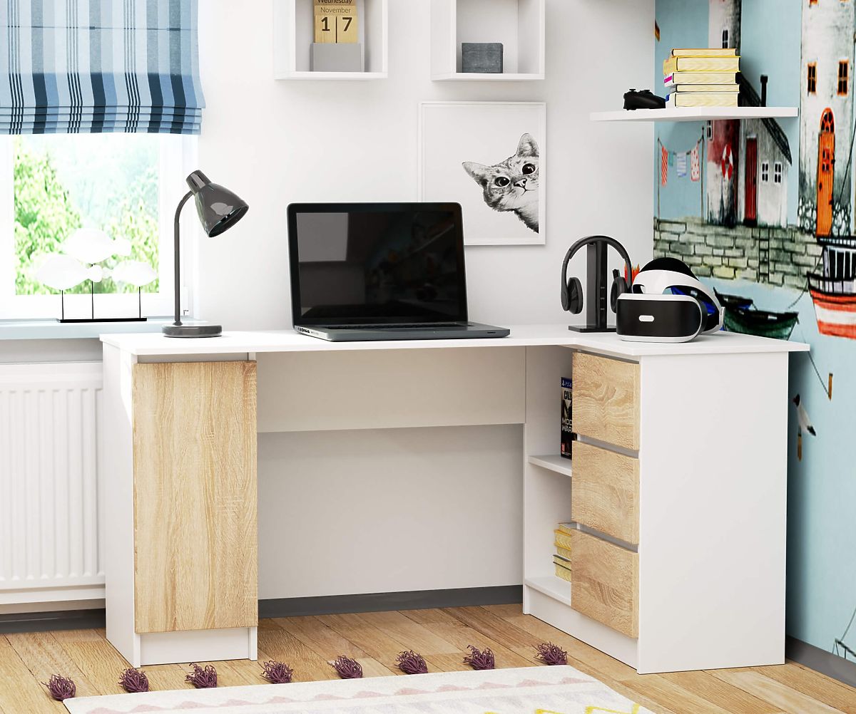 Banaby.pl » Meble dziecięce / Stoliki / Biurka / NAROŻNE BIURKO B20 CLP PRAWOSTRONNE PK BIAŁY / SONOMA