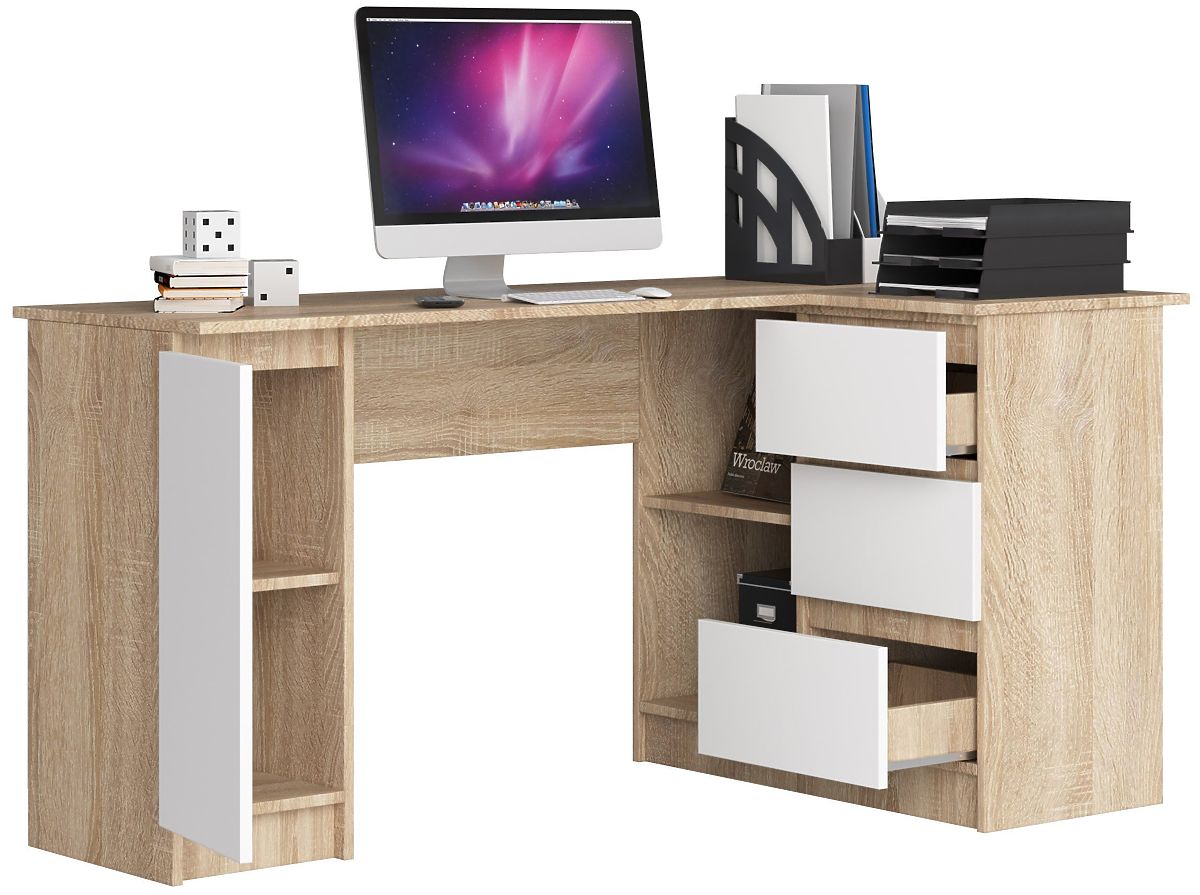 Banaby.pl   »   Meble dziecięce   /   Stoliki   /   Biurka   /   NAROŻNE BIURKO B20 CLP PRAWOSTRONNE SONOMA / BIAŁY