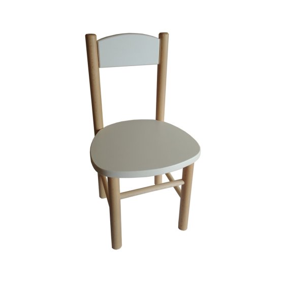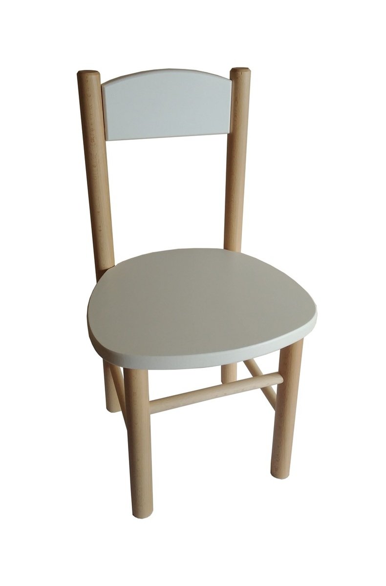 Dziecięce drewniane krzesełko w połączeniu białego i naturalnego koloru będzie idealnym dodatkiem do każdego stolika. Krzesło wykonane jest z drewna bukowego i charakteryzuje się wysoką odpornością na złamanie. Krawędzie krzesełka są zaokrąglone dla maksymalnego bezpieczeństwa.