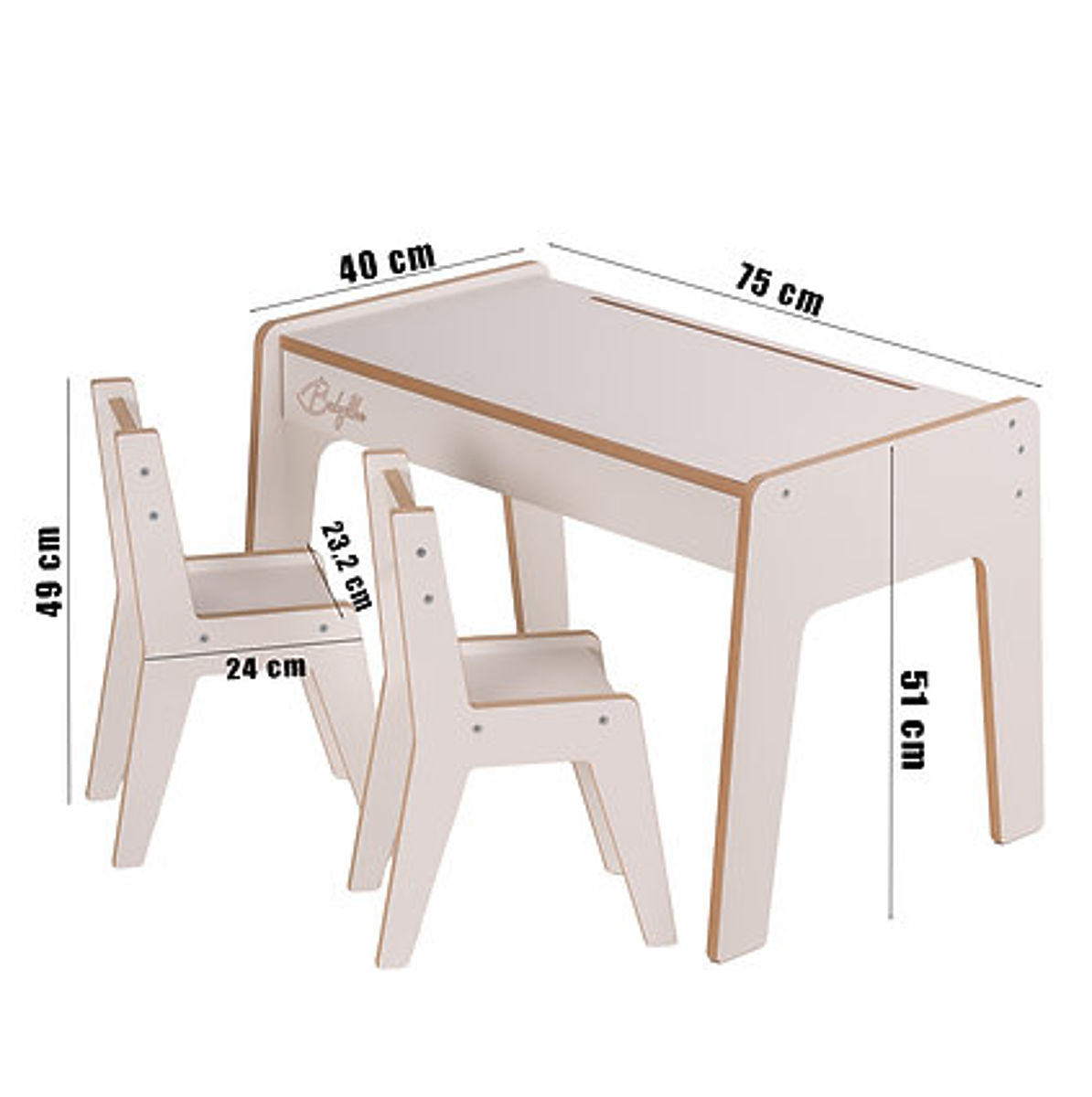 Zestaw został zaprojektowany z myślą o bezpieczeństwie i komforcie dziecka. Dzięki zaokrąglonym krawędziom i stabilnej konstrukcji możesz polegać na maksymalnym bezpieczeństwie, podczas gdy szeroka powierzchnia robocza zapewnia wystarczająco dużo miejsca na rysowanie, pisanie, budowanie z klocków lub projekty twórcze.