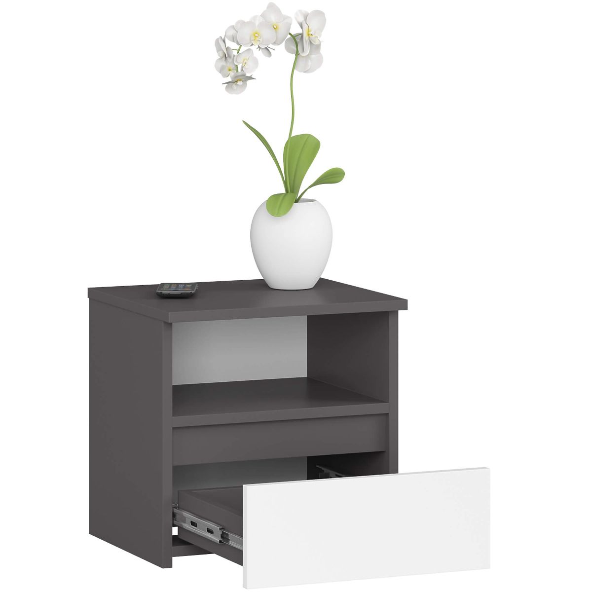 Szafka nocna CL1 w kolorze grafit szary z białymi frontami. .. więcej
