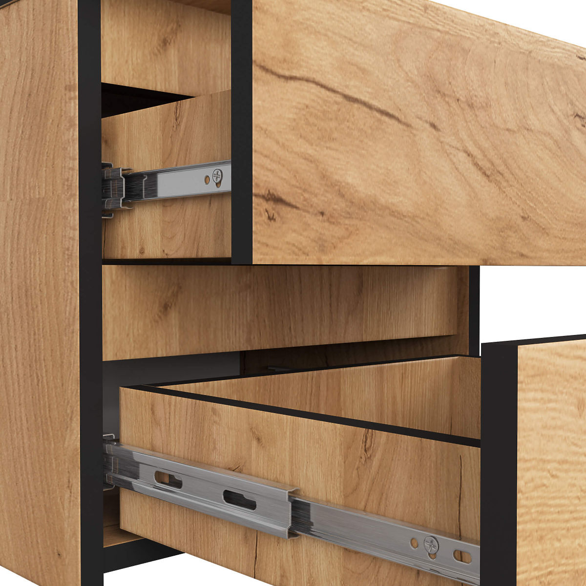- wygoda użytkowania - szuflady lekko przesuwają się na metalowych prowadnicach kulkowych,