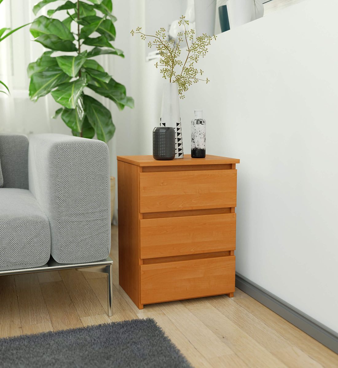 Szafka nocna CL3 40 cm w kolorze olchy z trzema szufladami. .. więcej