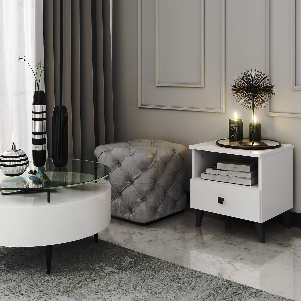 STOLIK NOCNY MOBI 1 SZUFLADA 1 PÓŁKA BIAŁA CZARNA