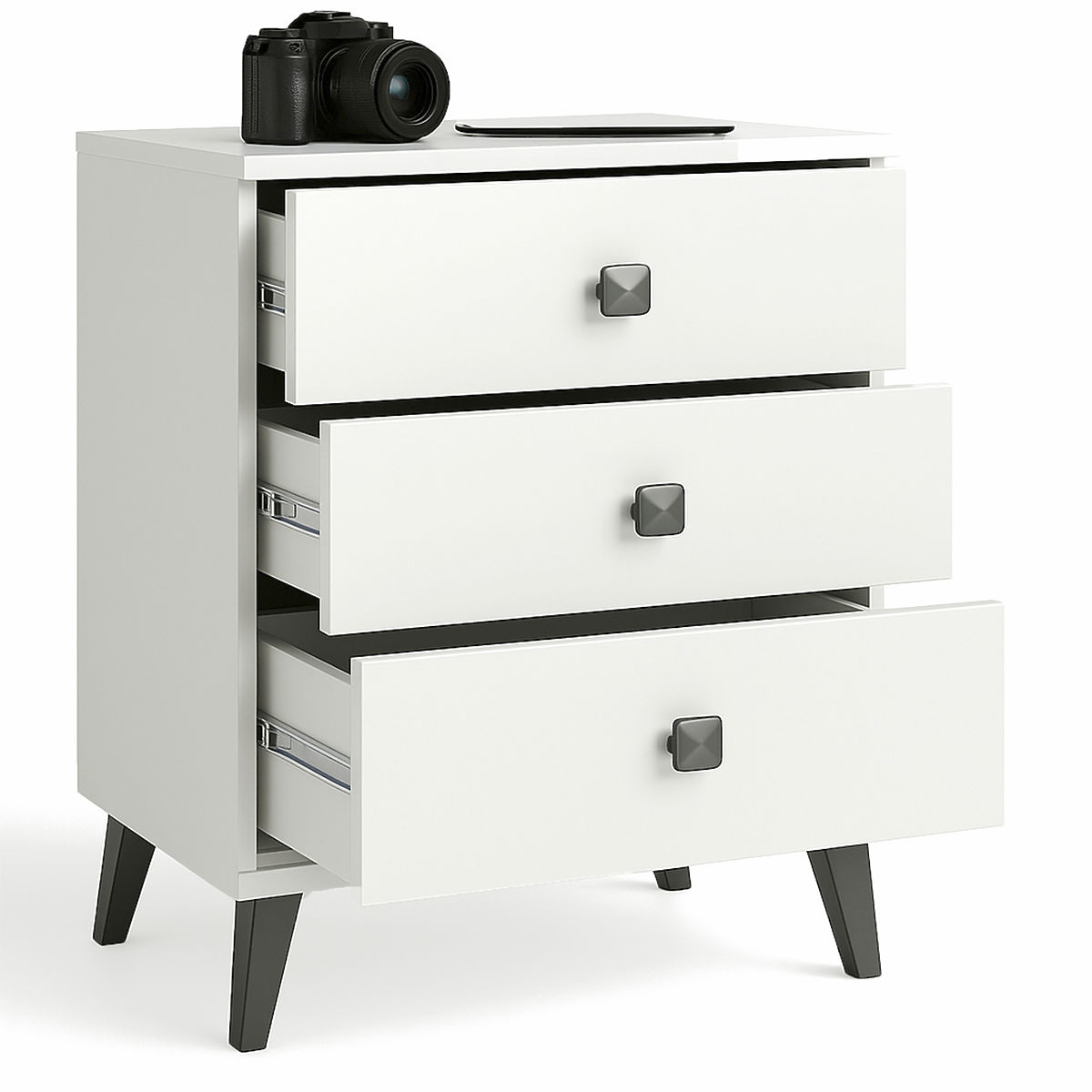 SZAFKA NOCNA MOBI 3 SZUFLADY BIAŁA CZARNA