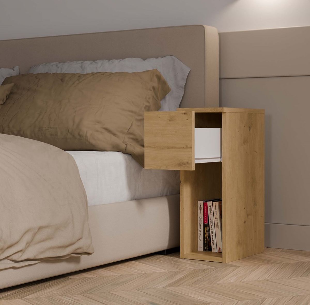 Stolik nocny GALAX 20 1S z szufladą i półką w kolorze dąb artisan. .. więcej