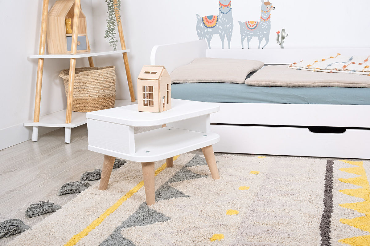 Elegancki stolik nocny z kolekcji NELL marki Ourbaby , wykonany z wysokiej jakości drewna sosnowego, zapewni miejsce na Twoje rzeczy, a także będzie stylowym dodatkiem do każdego wnętrza. Połączenie bieli i naturalnych kolorów wnosi do pomieszczenia subtelną elegancję. Produkt pokryty 3 warstwami białej farby, co gwarantuje odporność na ścieranie.