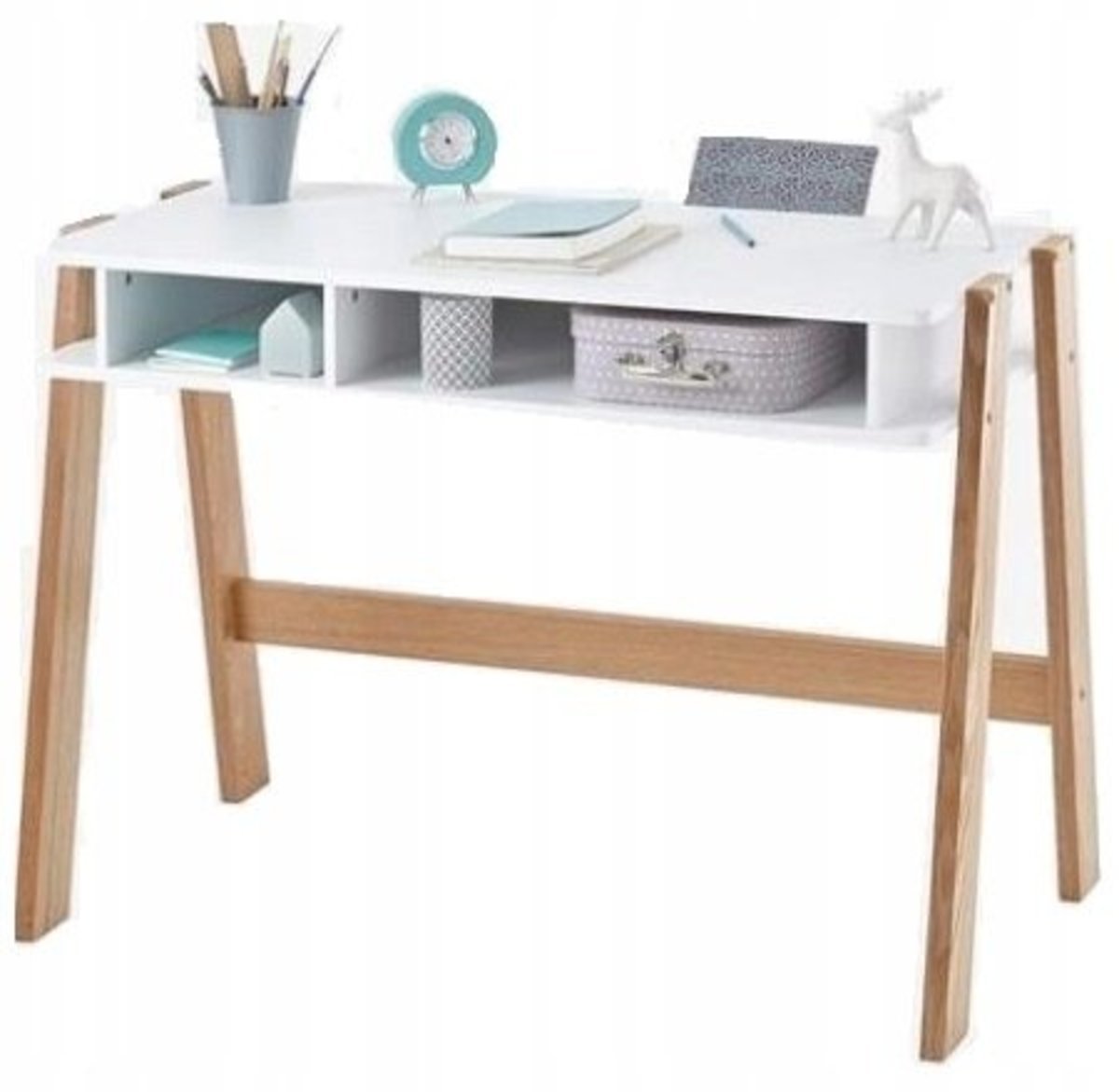 Ogromną zaletą stolika jest to, że może służyć jako funkcjonalny stolik kosmetyczny w sypialni, nowoczesny stół do pracy w gabinecie czy konsola w salonie.