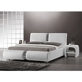 Nowoczesne i luksusowe łóżko Tokyo z ekoskóry w białym kolorze z detalami matelowymi w kolorze chrom .. więcej