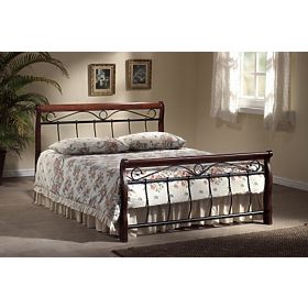 Piękna żelazne łóżko w stylu klasycznym. Interesujące połączenie metalu i drewnie. jakości drewno ma kolor antycznej czereśni. Rama jest metalowy, a także, przy czym przód w bieli na przedniej i tylnej części. Wysokość siatki od podłoża wynosi około 35 cm. Wysokość czoła na stopach wynosi około 60 cm.