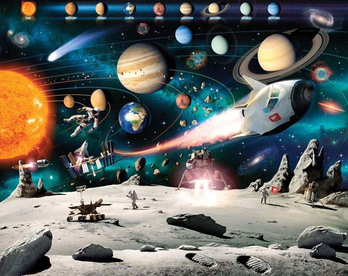 Tapeta 3D Kosmos pasuje do wszystkich pokoi dziecięcych i kącików zabaw.
