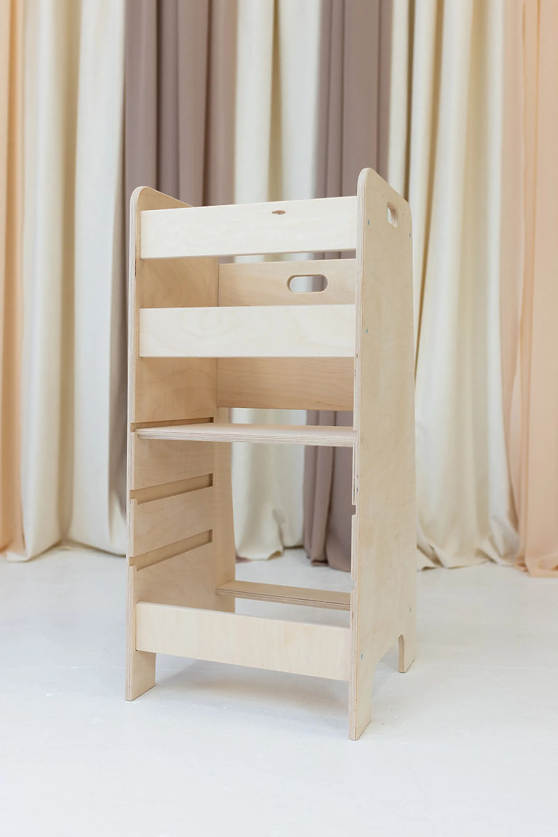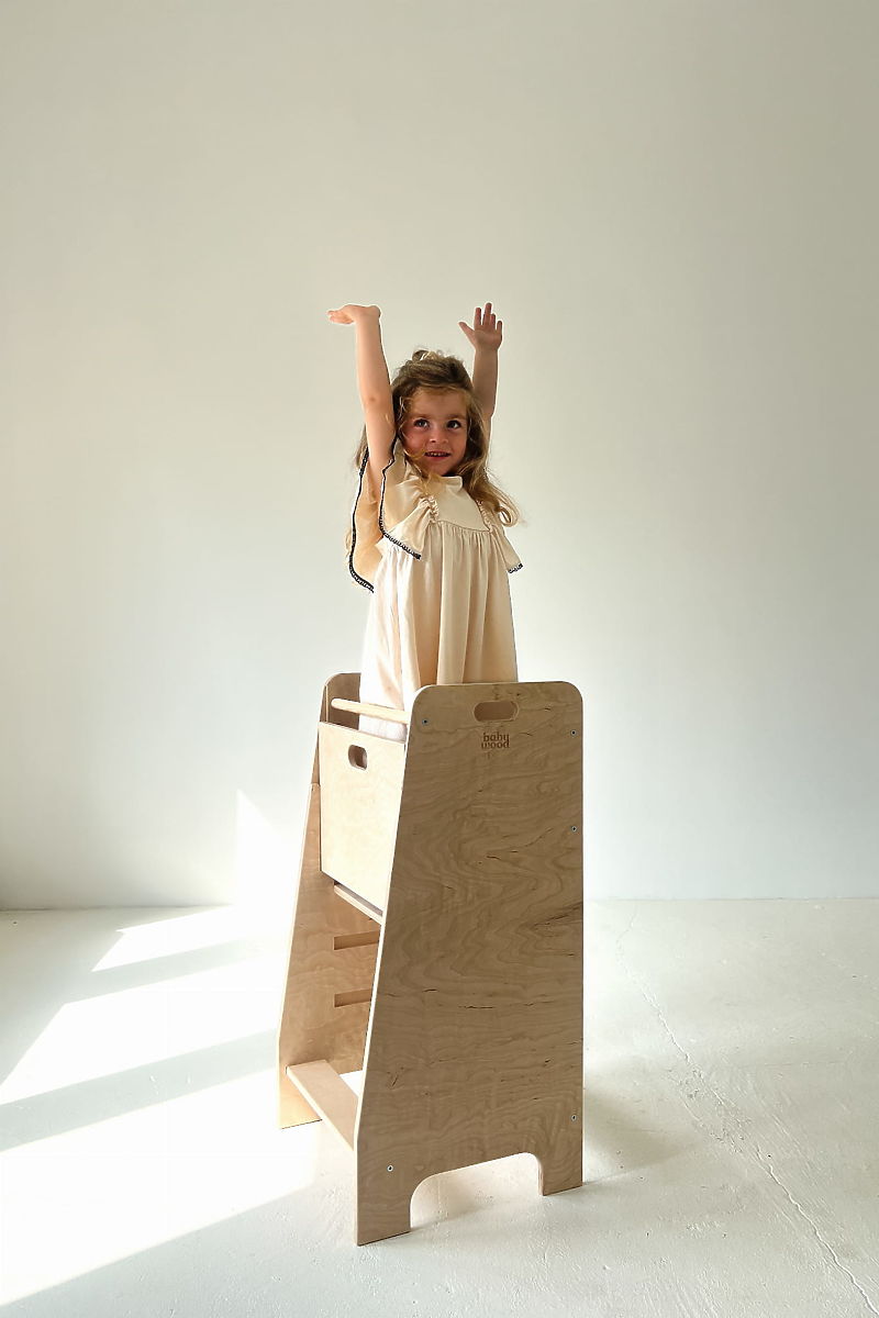 Wieża edukacyjna Comfort to praktyczny pomocnik kuchenny, który zamienia gotowanie z dziećmi w radosne wspólne przeżycie. Została zaprojektowana z naciskiem na bezpieczeństwo, stabilność i komfort małych pomocników, aby dzieci mogły aktywnie uczestniczyć w codziennych czynnościach kuchennych. Dzięki ponadczasowemu designowi i szerokiej gamie kolorów łatwo dopasowuje się do każdej kuchni.