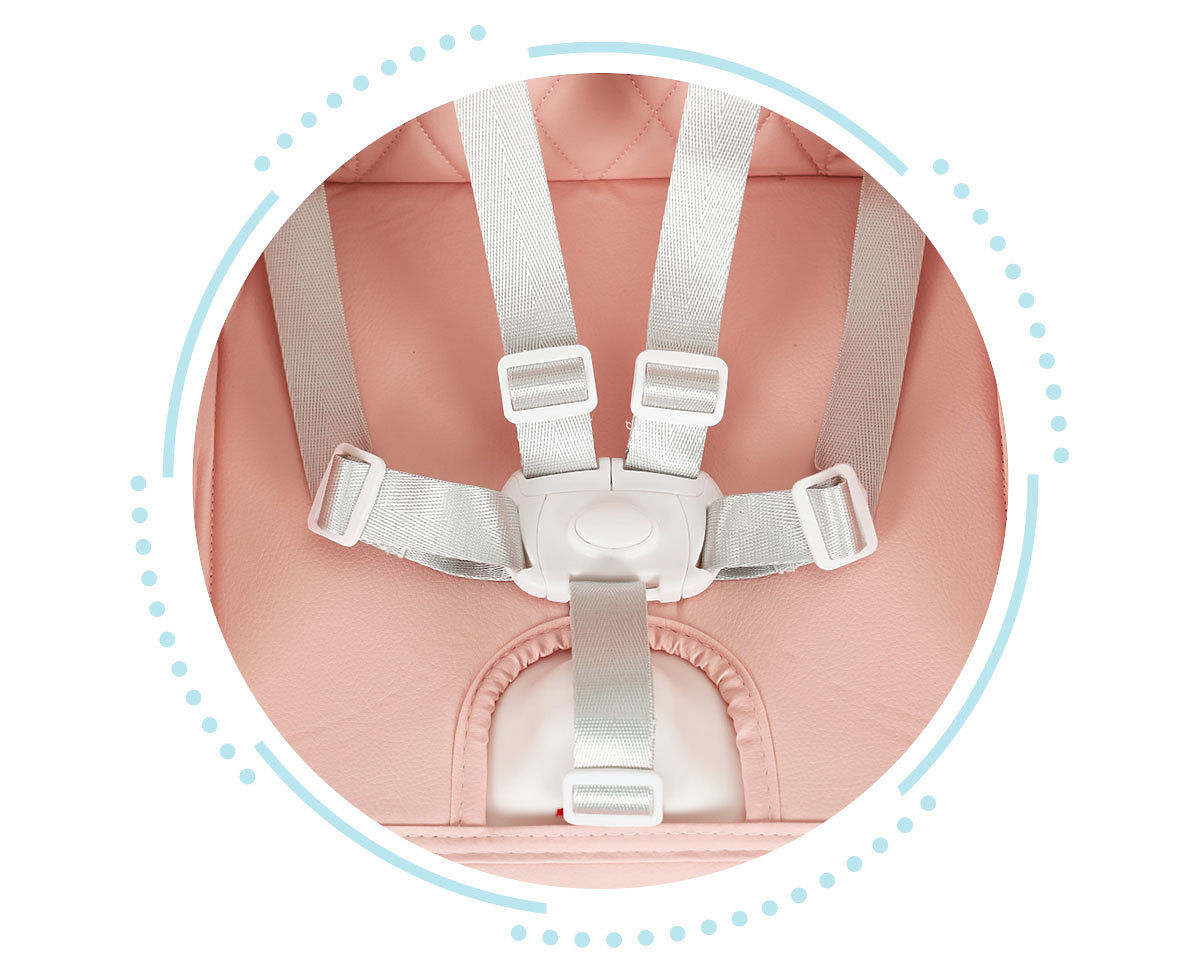 BEZPIECZNA KONSTRUKCJAKrzesełko jest wyposażone w 5-punktowe pasy bezpieczeństwa, dzięki którym Twoje dziecko będzie odpowiednio zabezpieczone i pasy utrzymają je w odpowiedniej pozycji.