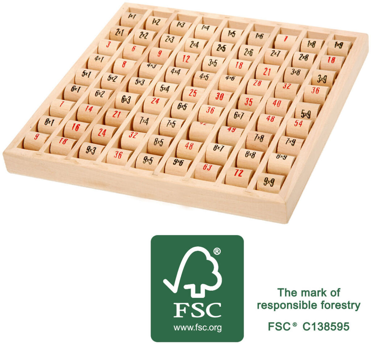 Narzędzie do nauki, które pomaga dzieciom nauczyć się małej tabliczki mnożenia. Możesz zmienić dane wejściowe przykładu lub znaleźć jego wynik za pomocą obracających się rolek. Główne cechy: wykonane w 100% z drewna certyfikowanego FSC® Znak i certyfikat FSC® (Forest Stewardship Council) gwarantuje, że drewno, z którego został wykonany produkt nie zostało pozyskane nielegalnie i pochodzi z lasów zarządzanych w sposób delikatny lub zbliżony do natury, w których przestrzegane są surowe wymagania środowiskowe i społeczne. Znak FSC® na produkcie oznacza, że kupując pomagasz chronić lasy i wspierasz łagodne, odpowiedzialne lub przyjazne naturze gospodarowanie, co sprawia, że nasze lasy są stabilniejsze, zdrowsze, mają naturalny skład gatunkowy i lepiej wytrzymują negatywne skutki zmian klimatu .