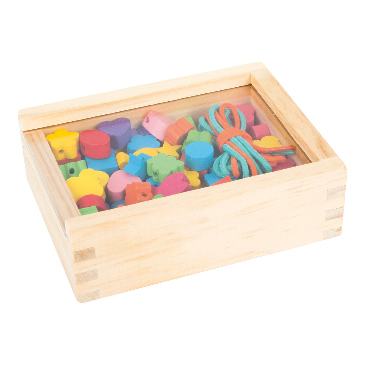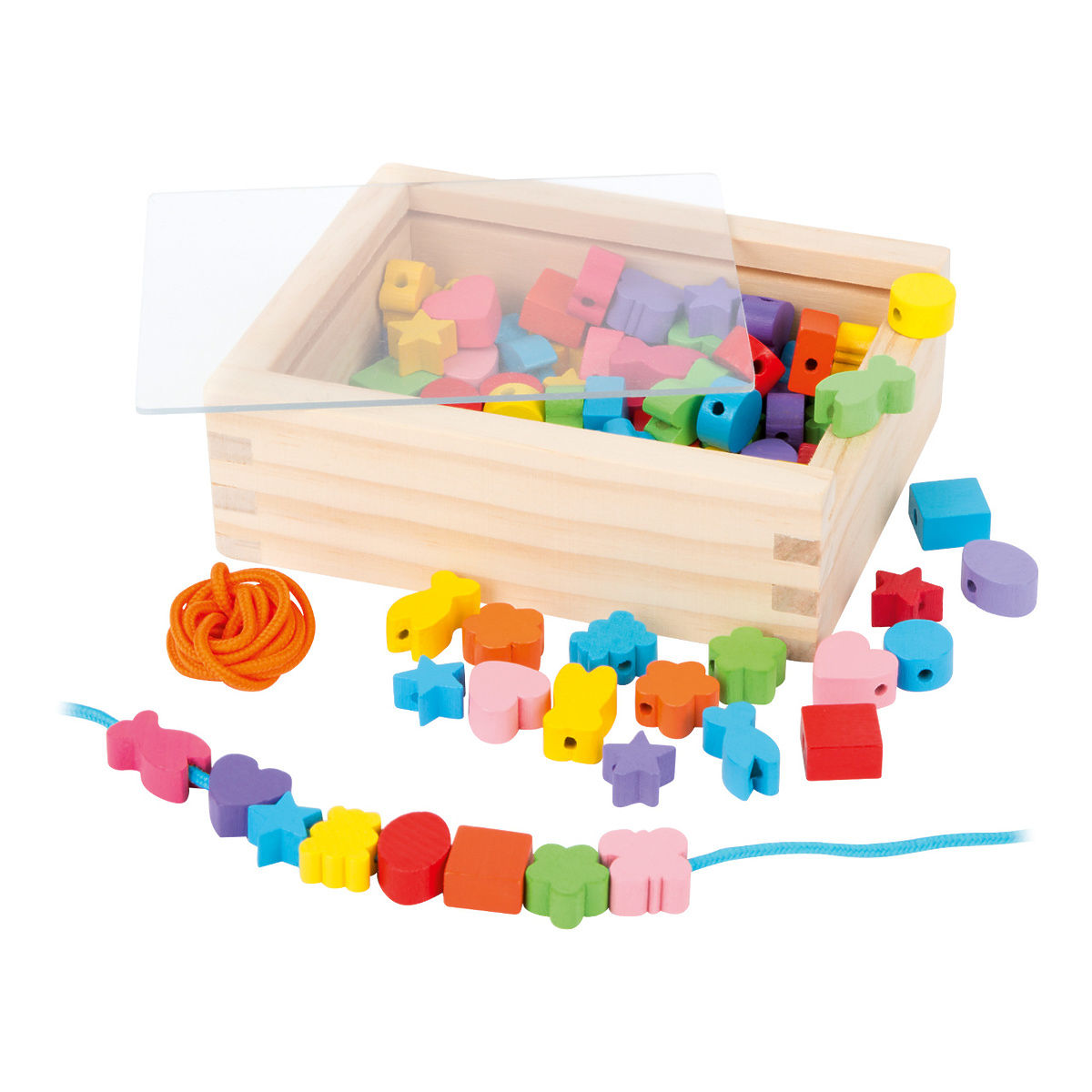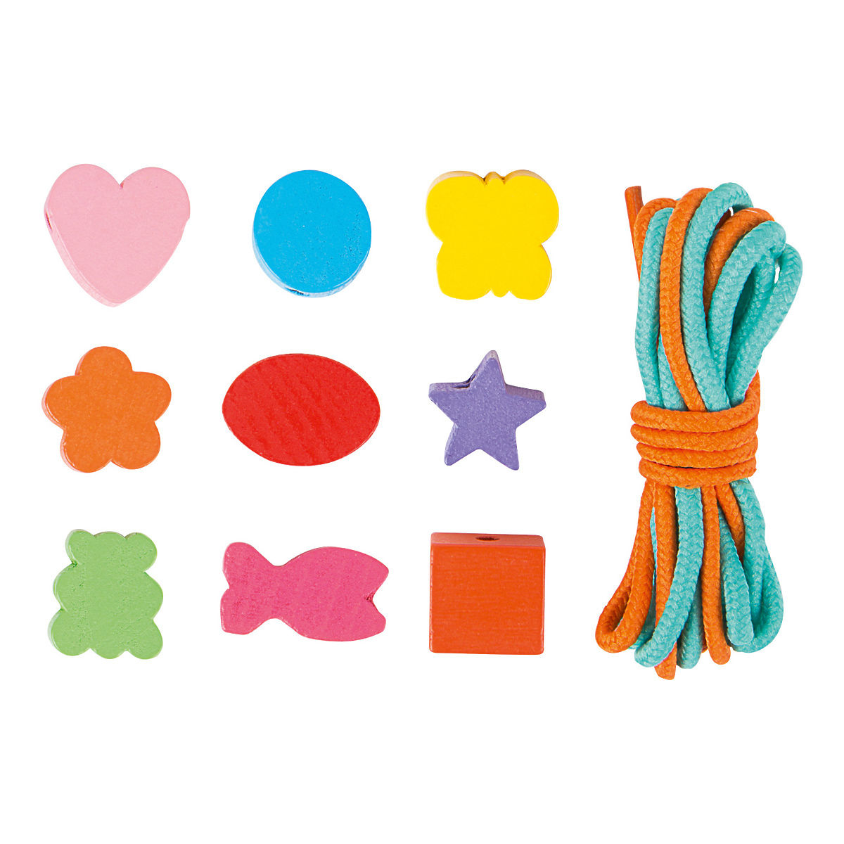 Czy to gwiazdki, serca czy kwiaty, to drewniane pudełko pełne sznurkowych koralików wykonane w 100% z drewna FSC® zachwyci każdego. Nie ma ograniczeń dla kreatywności, więc dzieci mogą stworzyć bransoletkę lub naszyjnik według swojej wyobraźni. Nawlekanie koralików na sznurek ćwiczy koordynację ręka-oko i umiejętności motoryczne. Jaką biżuterię wykonasz jako pierwszą?