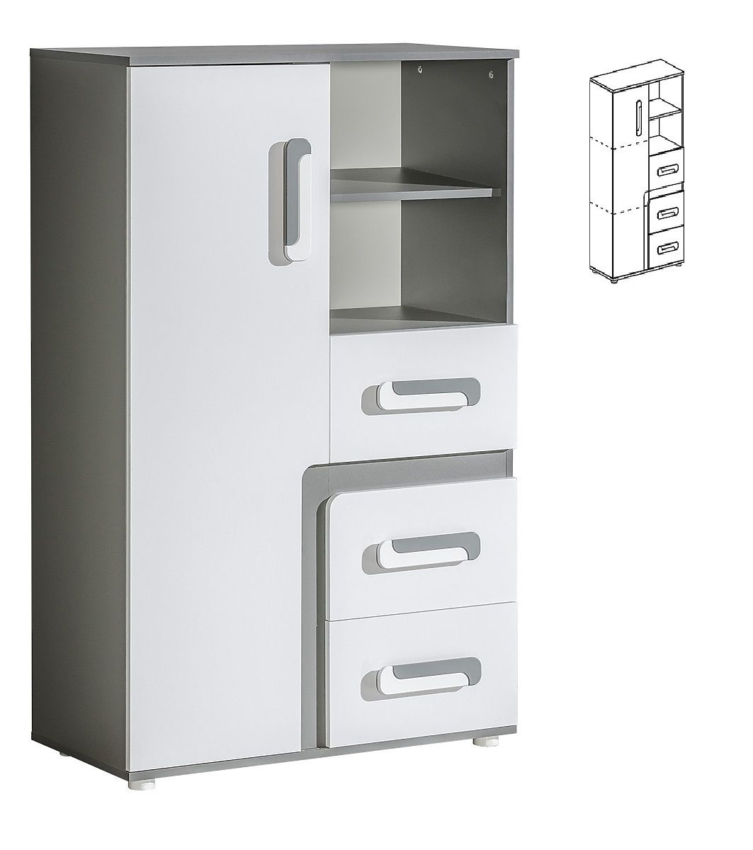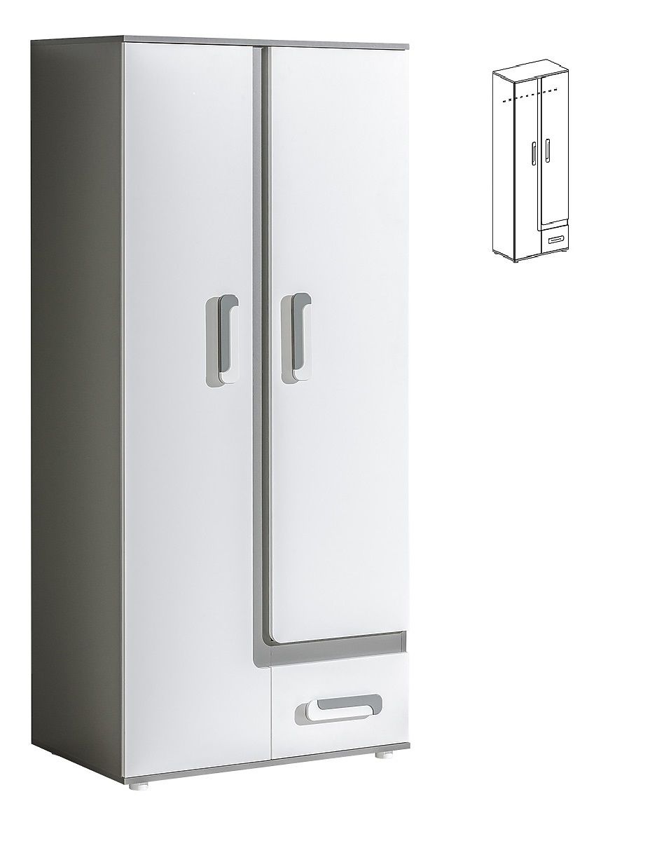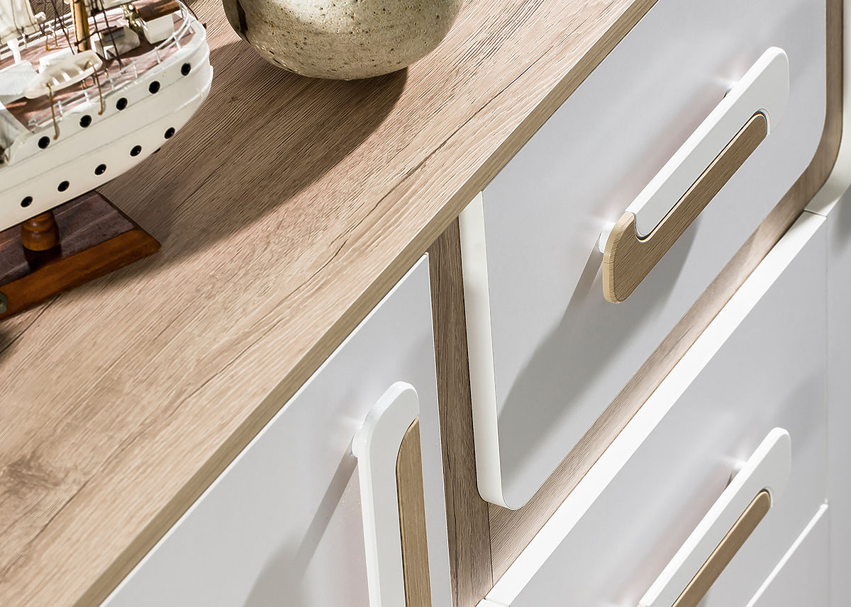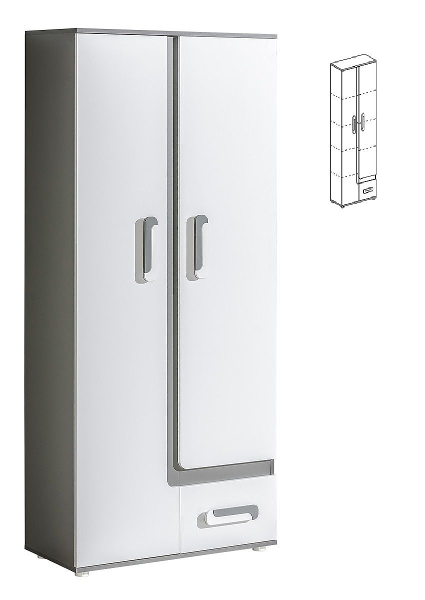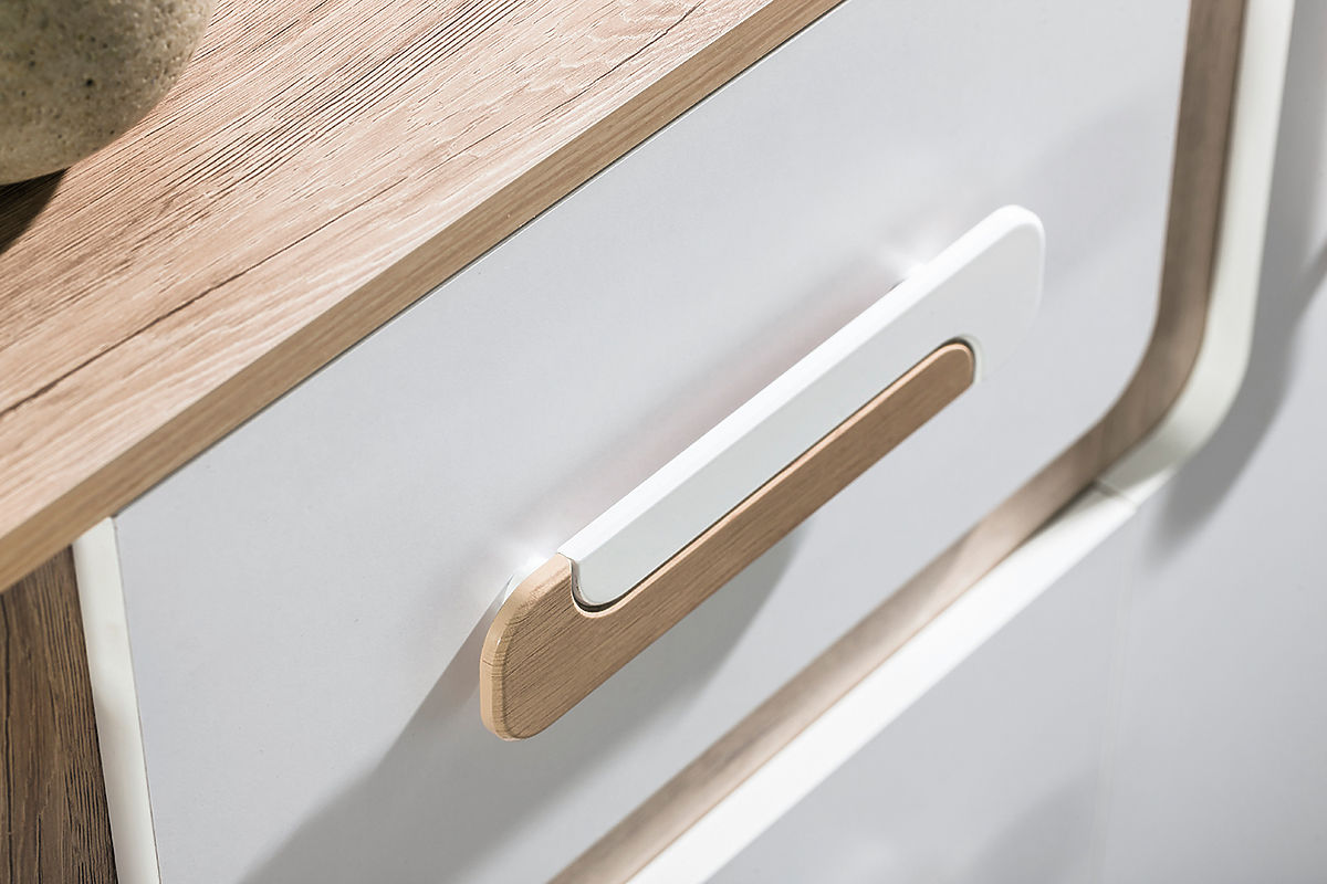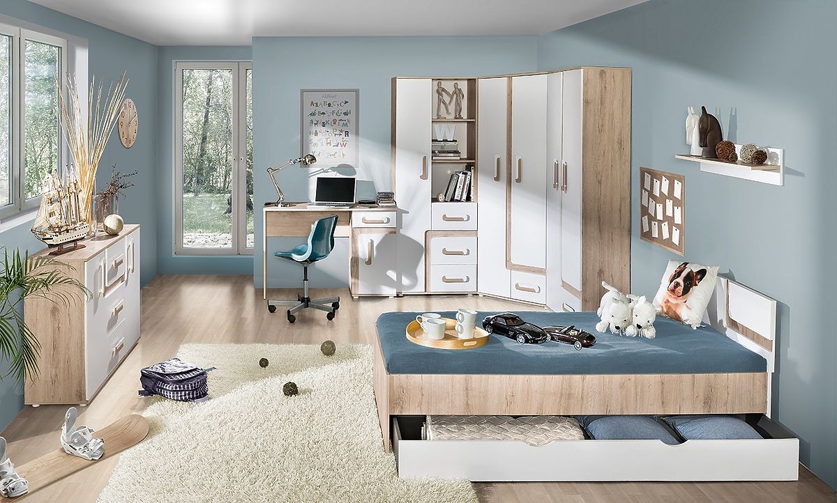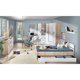 Dzięki tej kombinacji kolorów sprawi, że pokój wygląda czysty i nowoczesny. Połączenie koloru białego z dębu tworzy bardzo przyjemne wnętrze. Meble wykonane są z wysokiej jakości laminatu 16 mm.